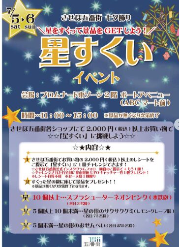 📅7/5(土)・7/6(日)📌星すくいイベント(させぼ五番街 七夕飾り)