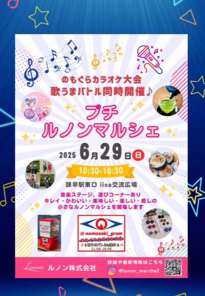 📅6/29(日)📌のもぐらカラオケ大会&プチルノンマルシェ in 諫早駅