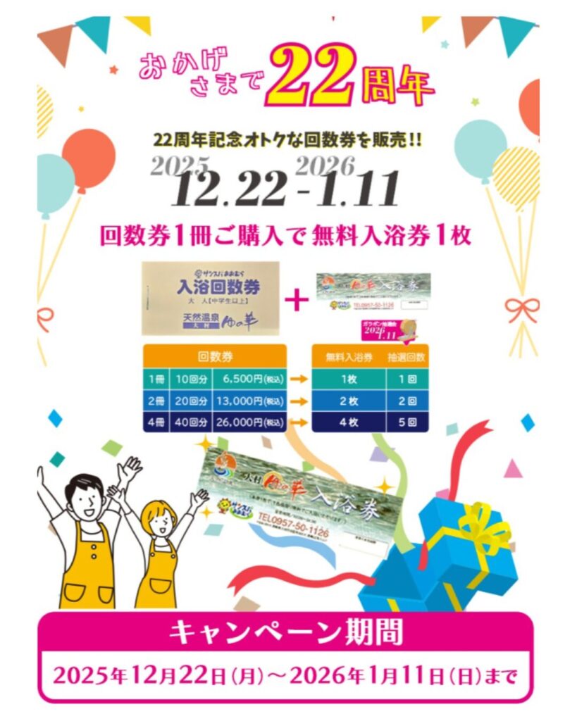 - 22周年記念🎉おトクな回数券を期間限定販売