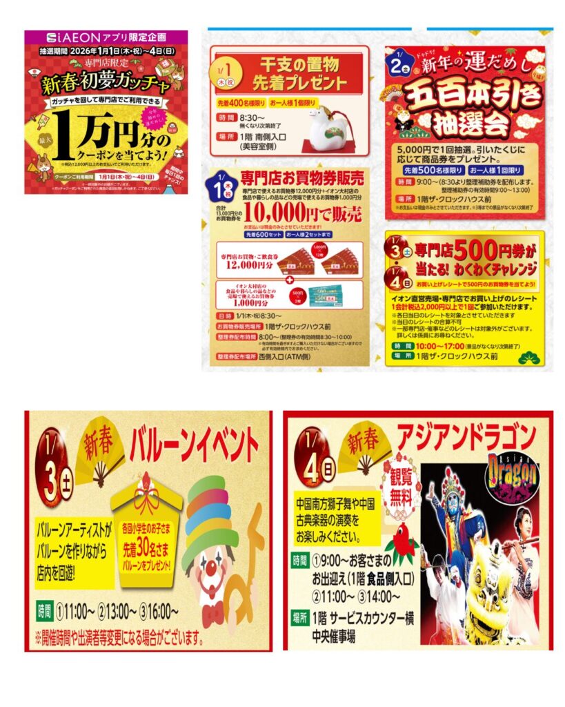 📅1/1(木・祝)〜1/4(日)📌新春初夢ガッチャ(iAEONアプリ)