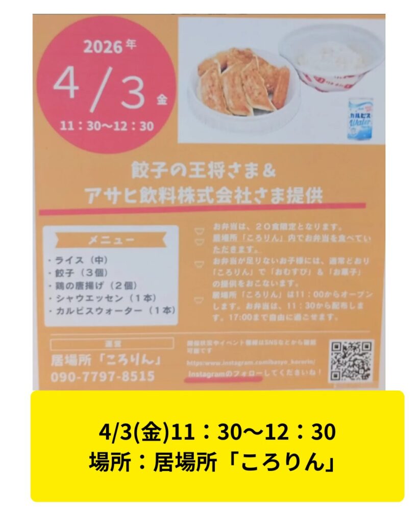 📅4/3(金)📌ころりん×餃子の王将 お弁当配布