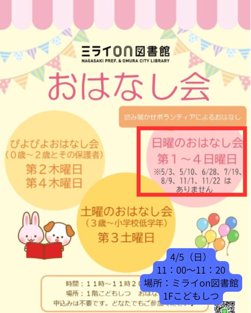 📅4/5(日)📌日曜のおはなし会(ミライon図書館)
