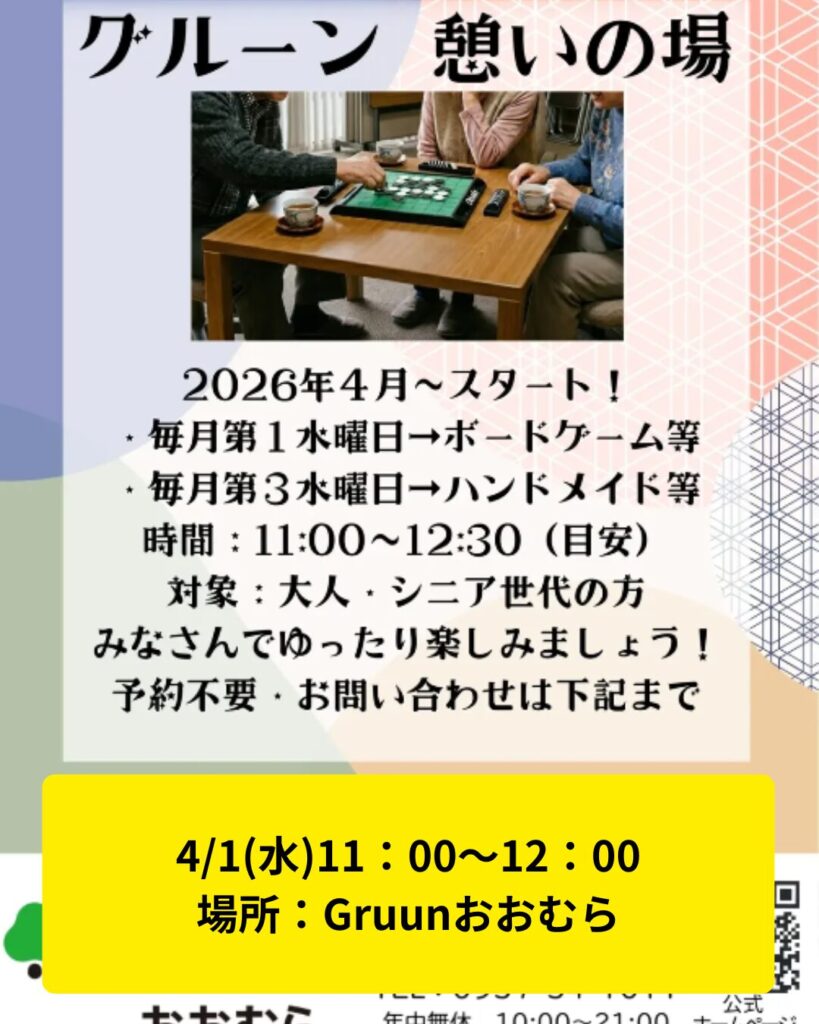 📅4/1(水)📌グルーン憩いの場(ボードゲーム・交流)