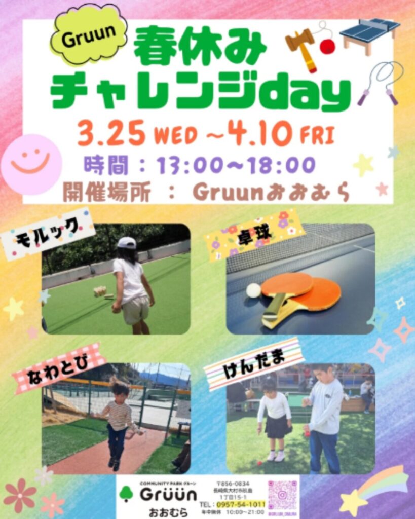 📅開催中〜4/10(金)📌春休みチャレンジday(Gruunおおむら)