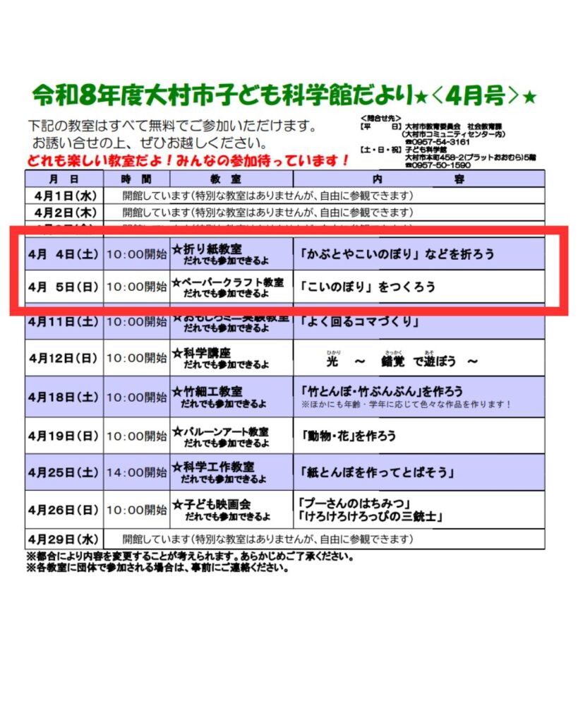 📅4/5(日)📌子ども科学館 ペーパークラフト教室